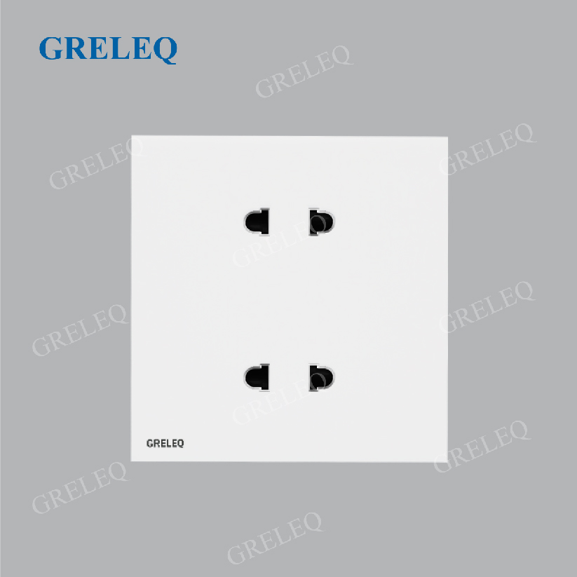 Ổ cắm đôi 2 chấu Greleq được thiết kế với 2 khe cắm riêng biệt, cho phép kết nối cùng lúc hai thiết bị điện trong một mặt ổ. Sản phẩm mang đến sự tiện lợi, tiết kiệm diện tích lắp đặt và phù hợp với nhiều không gian như gia đình, văn phòng, cửa hàng hay công trình dân dụng.