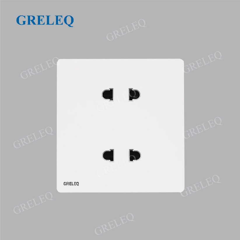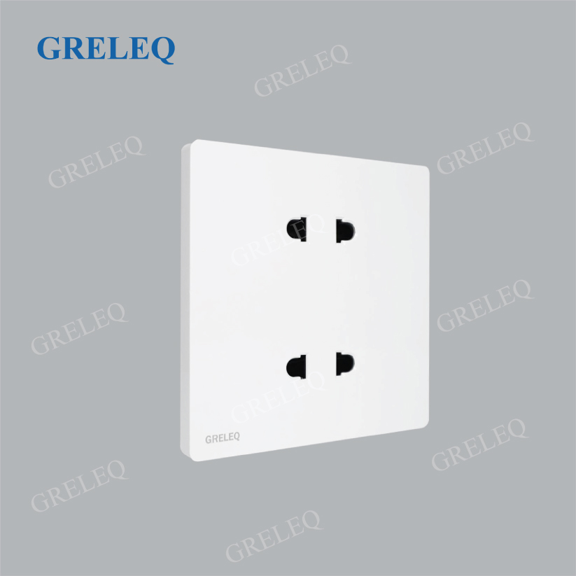 Ổ cắm đôi 2 chấu Greleq được thiết kế với 2 khe cắm riêng biệt, cho phép kết nối cùng lúc hai thiết bị điện trong một mặt ổ. Sản phẩm mang đến sự tiện lợi, tiết kiệm diện tích lắp đặt và phù hợp với nhiều không gian như gia đình, văn phòng, cửa hàng hay công trình dân dụng.