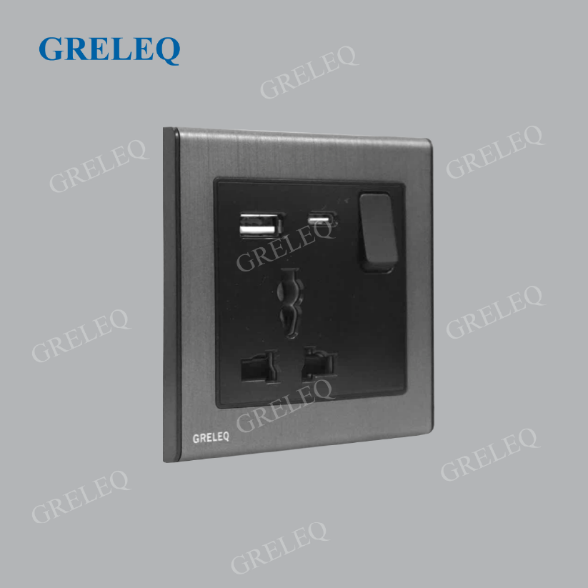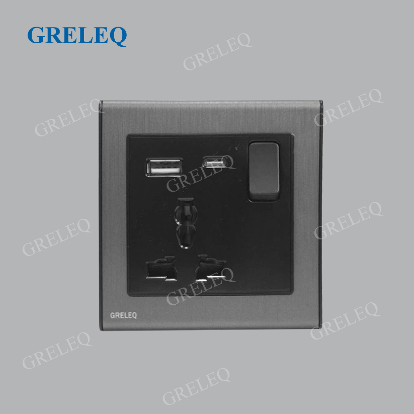 • Màu sắc: Sở hữu khung màu xám kim loại xước cùng với phần mặt công tắc/ ổ cắm màu đen trầm tạo độ tương phản rõ nét, giúp tổng thể hài hoà và phù hợp với các không gian nội thất đương đại.