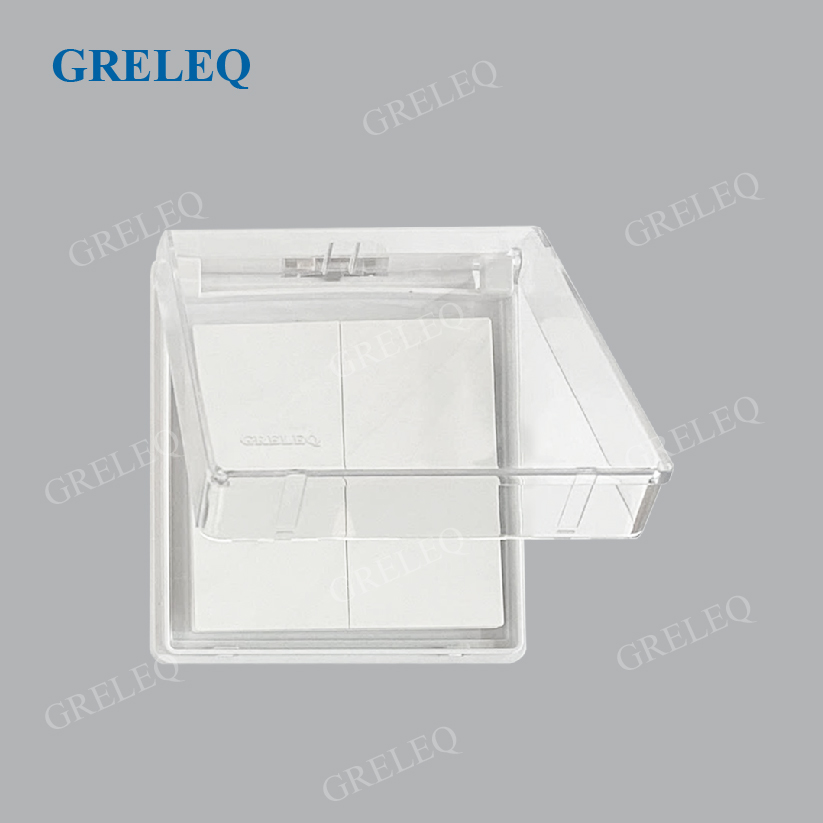 Thiết kế của hộp đậy có nắp che mưa nhỏ gọn, dễ lắp đặt, tiết kiệm diện tích và dễ bố trí. Hộp đậy hình vuông, có thể lắp ngang hoặc dọc tuỳ vào từng thiết kế của công tắc/ ổ cắm.